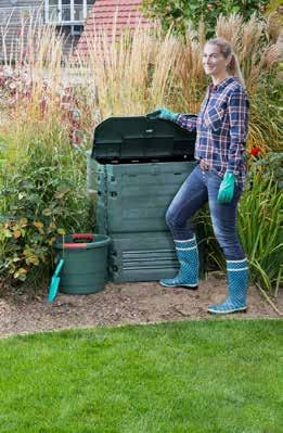 Komposter mit Deckel. Bequemes Befüllen durch 2 große Einfüllklappen. Grün, aus UV stabilem PE, Entnahme Möglichkeit unten. Ohne Bodenplatte.