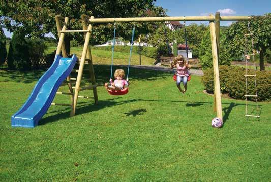 1. Schaukelbalken Ø 10 cm, mit Podest, inkl. Strickleiter und 2 Schaukelsitze, Montagematerial, Kiefer kesseldruckimprägniert, Maße: (B x T x H): 440 x 190 x 220 cm, ohne Rutsche und Bodenanker | statt 289,99 219,99 8002330