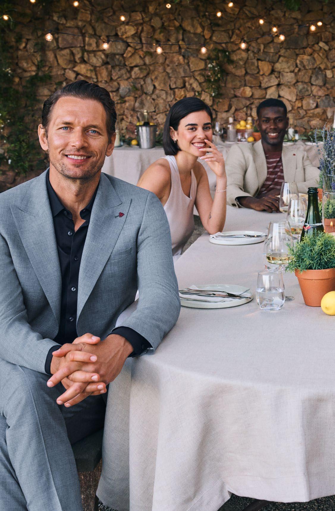 rechts: Sakko ab 249,95€, Hose ab 99,95€, Strick-Shirt 69,95€
