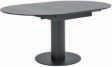 ESSTISCH mit V-Säule, Eiche Halifax Nachbildung, Bodenplatte schwarz, ausziehbar per Synchronauszug, ca. 140-220x90 cm, inkl. 2 Einlegeplatten à 40 cm. Partnerring Collection Multi-Decor
