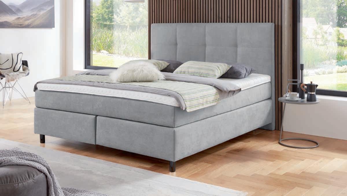 1| Interliving Boxspringbett Serie 1418 - Boxspringbett, Bezug Stoff Feincord silver, Metallfuß schwarz, best. aus Kopfteil mit vertikaler Steppung, Unterbau Luxury-Bonell Federkern, 2x 5-Zonen-Taschenfederkern-Matratze, H2/H3, Liegefläche ca. 180x200 cm. Bezug: 95% Polyester, 5% Nylon. Ohne Bettzeug, Plaid und Kissen. M9621122093803871