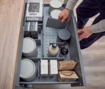 Flexibel unterteilbare Schublade mit Stecksystem –gegen Mehrpreis erhältlich.