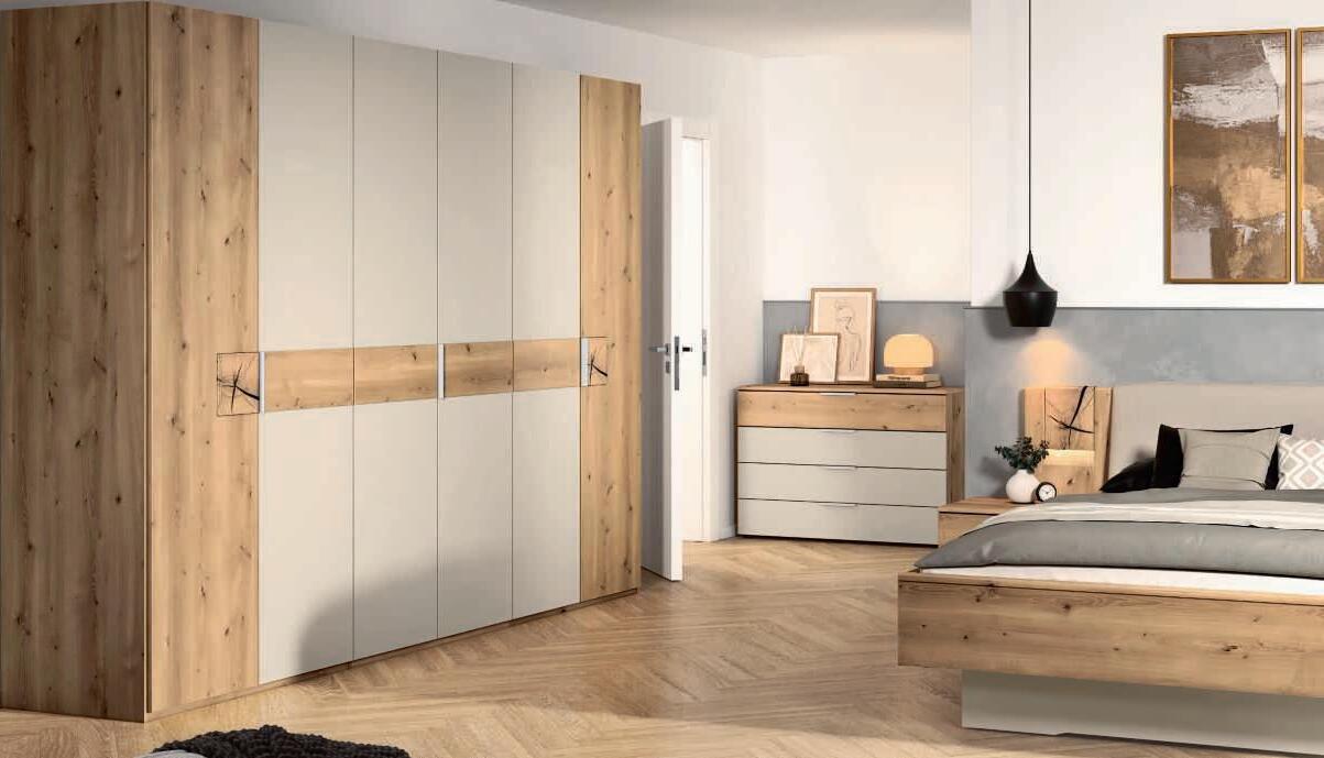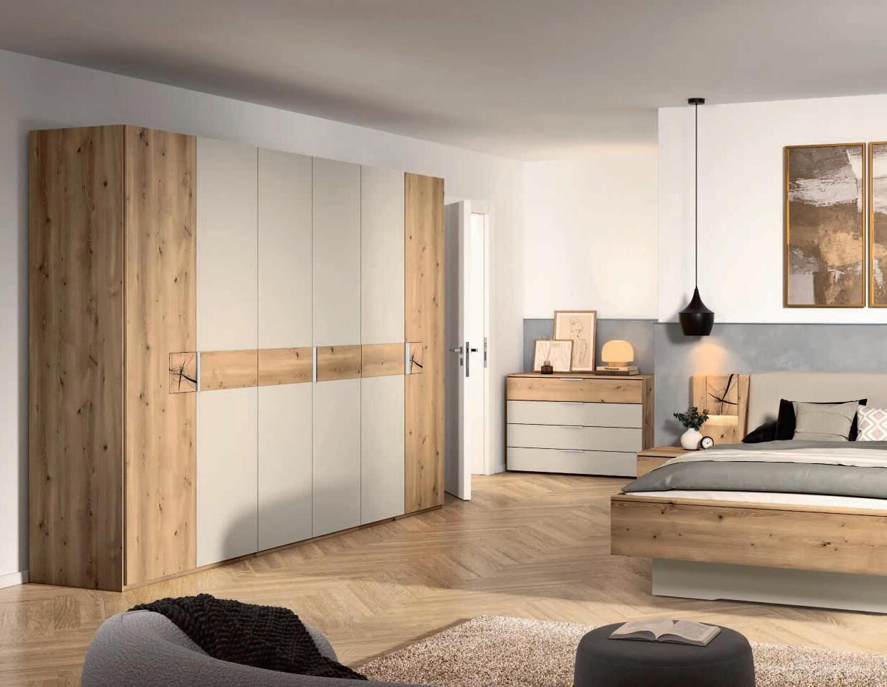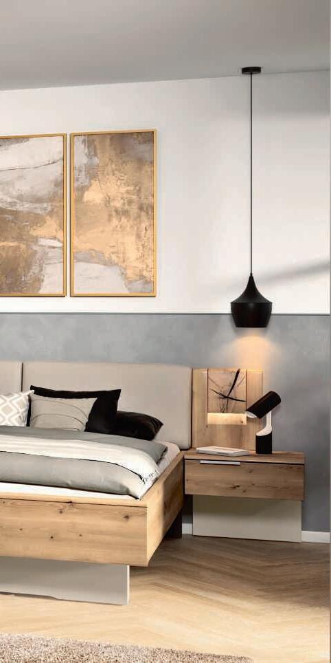 Außergewöhnliche Materialien wie z.B. Wildeiche-Massivholz und Absetzungen aus Echt-Kork sowie ein umfangreicher Typenplan mit vielen Einzelmöbeln machen dieses Programm so attraktiv. Stimmungsvolle Beleuchtung ist gegen Mehrpreis ebenfalls planbar.