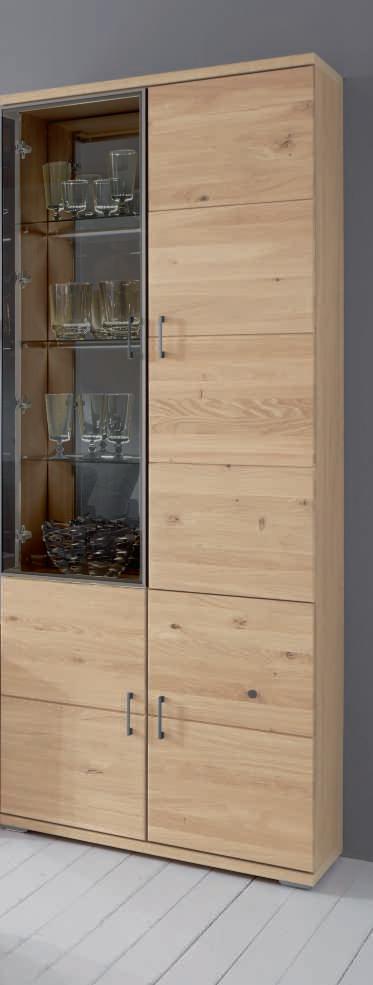 Meine Fronten aus WildeicheMassivholz mit Glasdetails in Anthrazit Satin matt geben deinem Wohnzimmer einen ganz besonderen Look - passend dazu sind meine Griffe anthrazitfarben lackiert.