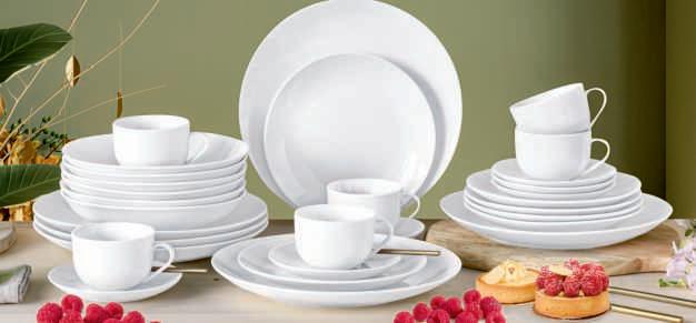 GESCHIRRSERIE, Porzellan, spülmaschinenund mikrowellengeeignet. Luna