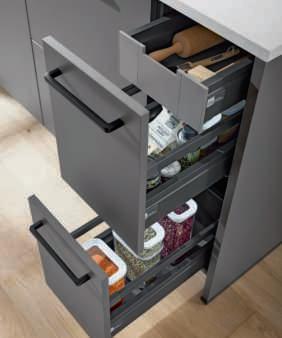 Die geräumigen Vollauszüge unter dem Kochfeld bieten optimale Erreichbarkeit aller Utensilien.