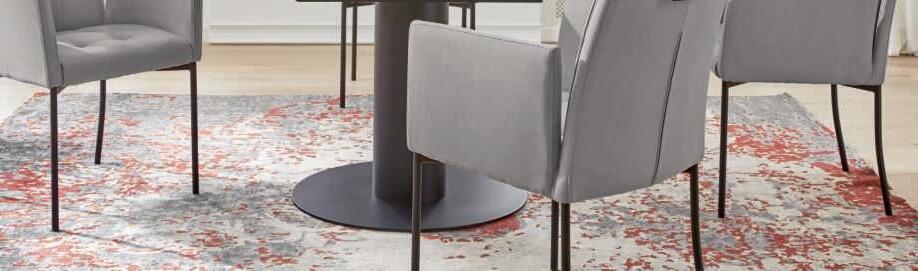 Interliving Esszimmer Serie 5104 5I Auszugtisch, Platte Glaskeramik, Gestell schwarz gepulvert, inkl. Mittelauszug, Ø ca. 120-180 cm. 6I Armlehnstuhl, Bezug Mikrofaser Dove grau, Gestell schwarz gepulvert, Sitzschale ILCA mit Griff im Rücken, Bezug: 100% Polyester. M955406 200 211 9726