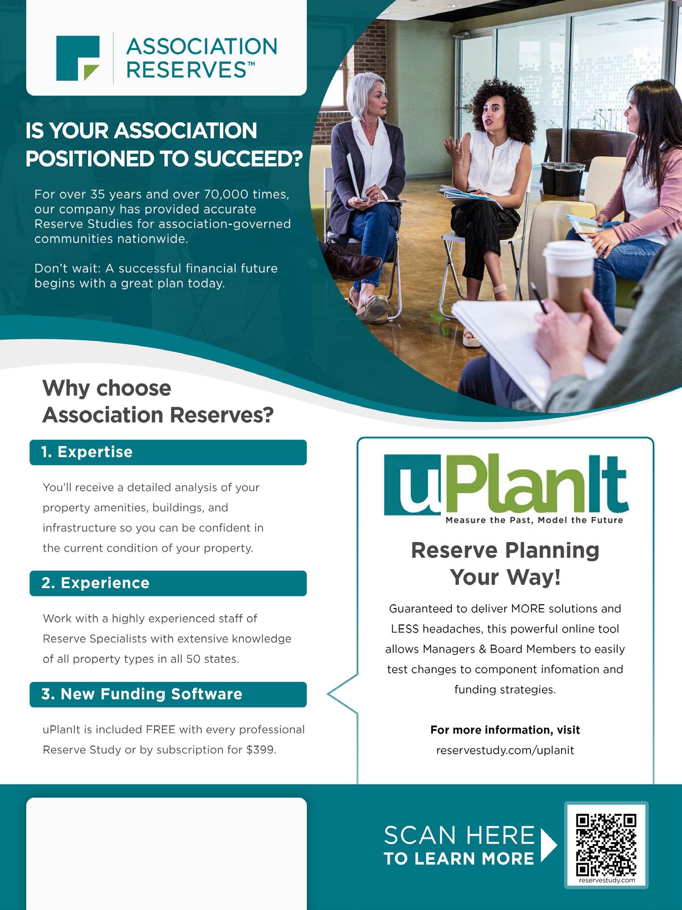 adequately funded and aligned with the association’s future needs. Especially in Florida, where next year, 2025, new infrastructure reserve requirements go into effect.