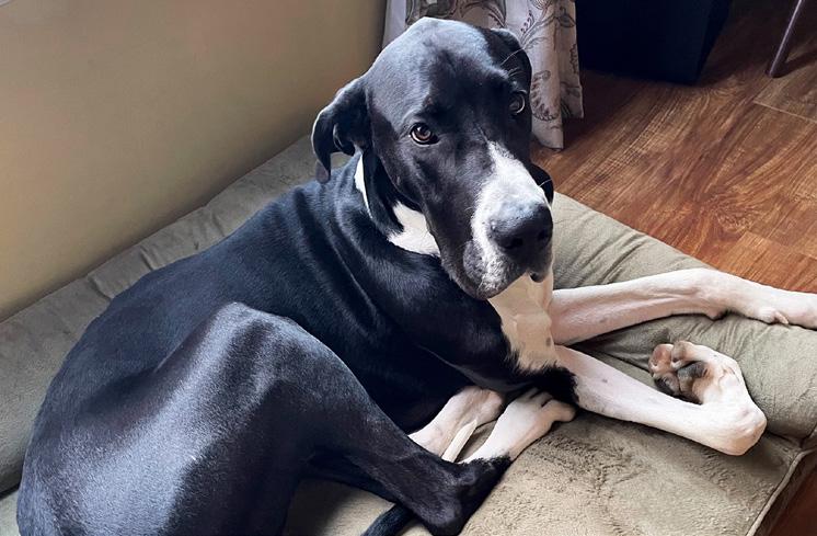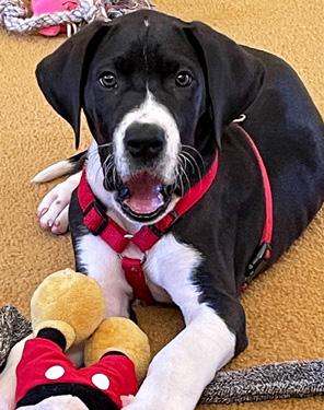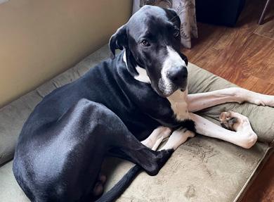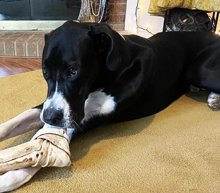 A sweet and lovable Great Dane, when Max isn’t playing his favorite game of fetch, you can find him chewing on one of his treasured stuffed animals. When Tony brought puppy Max home to Sheila, he described Max to her as a “miniature” version of the breed. However, as Max grew larger and then even larger, there was no hiding the fact that he was growing into a gentle giant. Like most dogs, Max loves attention and believes himself to be a small lap dog. At any moment, he will plop one or both of his front legs on your lap and stand there calmly so you can rub his legs. Max is one year and eight months old! His special talent is “talking” by yawning to let you know what he needs. Max anxiously awaits the opening of our Bark Park to play his favorite game of fetch. We hope to see all our Furry Friends at next month’s Yappy Hour!