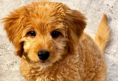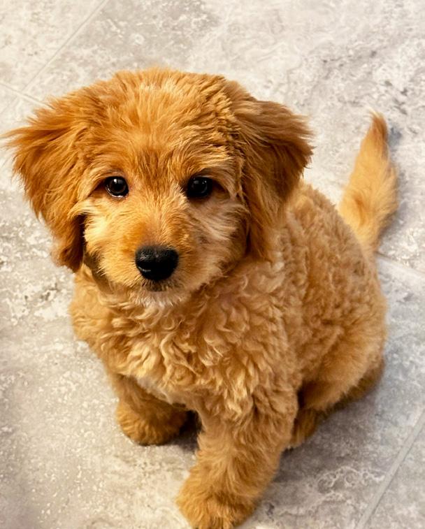 Bentley is a 10-week old Goldendoodle with lots of fluffy fur and even more personality! He loves looking at himself in the mirror and barking at that adorable puppy staring back. He really loves his parents, Lisa and Victor Defense. They take such good care of Bentley, play with him, and give him the best snuggles ever. Bentley is very playful and full of energy, always ready to chase toys, run around, and make new friends. One of his favorite things to do is give lots and lots of kisses. He loves cuddles, belly rubs, and being the center of attention. Life is pretty exciting when you’re a happy little pup like Bentley!