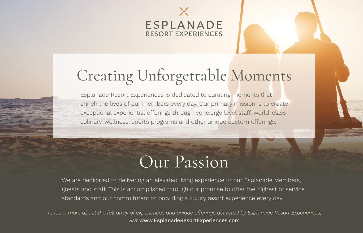 they’ll do incredible things to carry on the vision we’ve started together. In the meantime, please feel free to reach out to your Community Association Manager with any questions. James can be reached at James.Alexander@ TeamEsplanade.com.