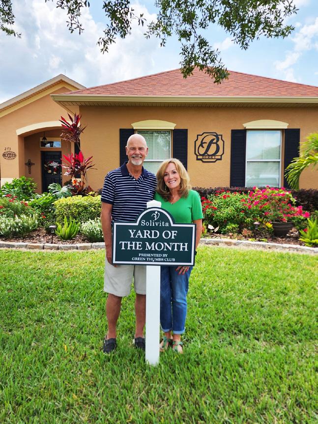 Our latest winner for the Yard of the Month comes from the lovely, quiet neighborhood of Bella Viana, across Marigold Avenue. Deanne and Bob Berry found their way from Oklahoma with some stops along the way to Solivita and have made 273 Sorrento Road their home for the past three years. As you can see from the photographs, they take pride in gardening at their lovely home. Bob is the “Green Thumb” of the family. Congratulations Berrys - beautiful yard!