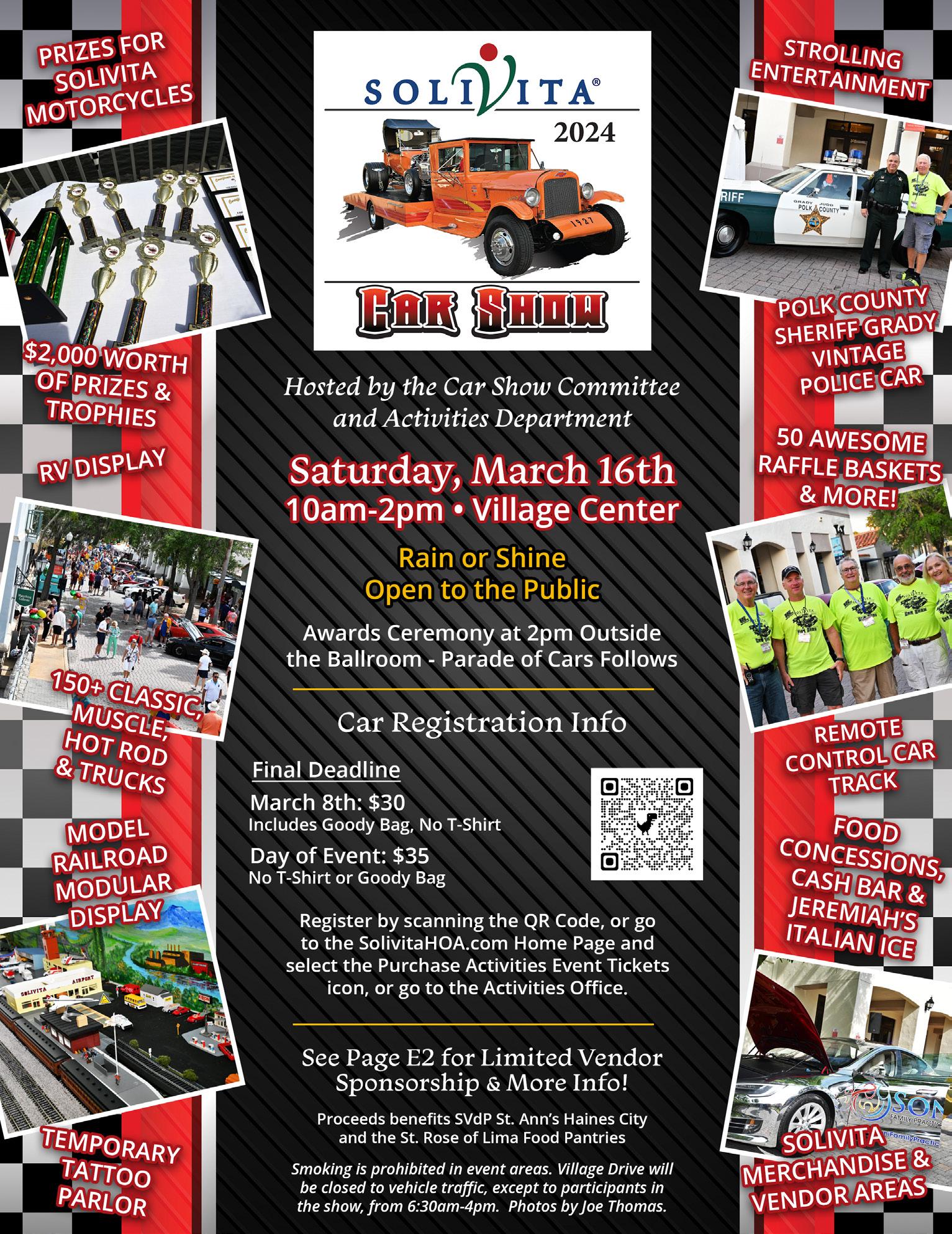 Online table selecting and payment will start on March 1st at 9am on the SolivitaHOA.com home page. Click on the “Purchase Activities Events Tickets or Solivita University Classes Here” image or scan the QR code using your phone camera or QR scanner app for all March Trivia dates. Walk-ins welcome if Trivia is not sold out. You may input one attendee name per Trivia date.