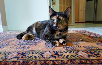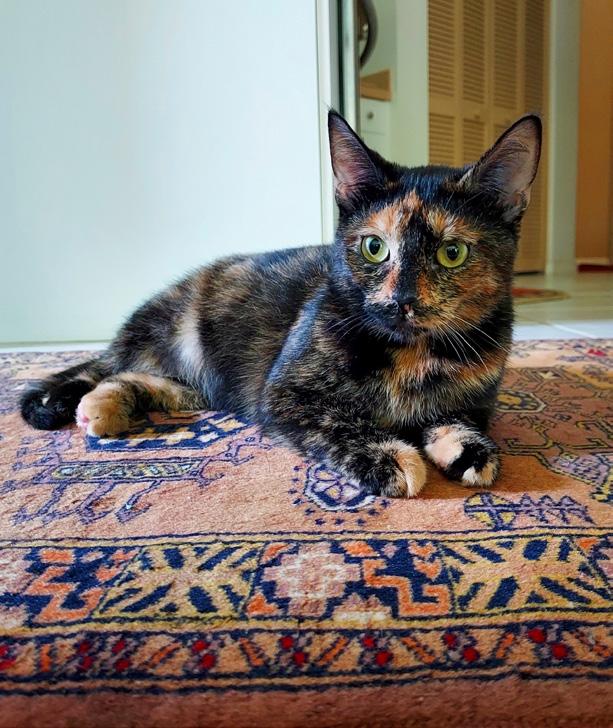 Pebbles is a 3½-year-old American Shorthair cat who found her forever home with the Gianakouros family after being rescued from Satchel’s Last Resort animal shelter. It was love at first sight—her quiet charm and curious eyes instantly won them over. Though shy at first, Pebbles slowly blossomed, revealing her sweet and quirky personality as she settled in. She’s now queen of the lanai, where she spends her days chasing lizards and occasionally gifting her humans with her “finds”—some more welcome than others! Pebbles loves nothing more than basking in the warm sun, falling asleep cuddled up with her family, and crunching on her favorite treat: freeze-dried chicken.