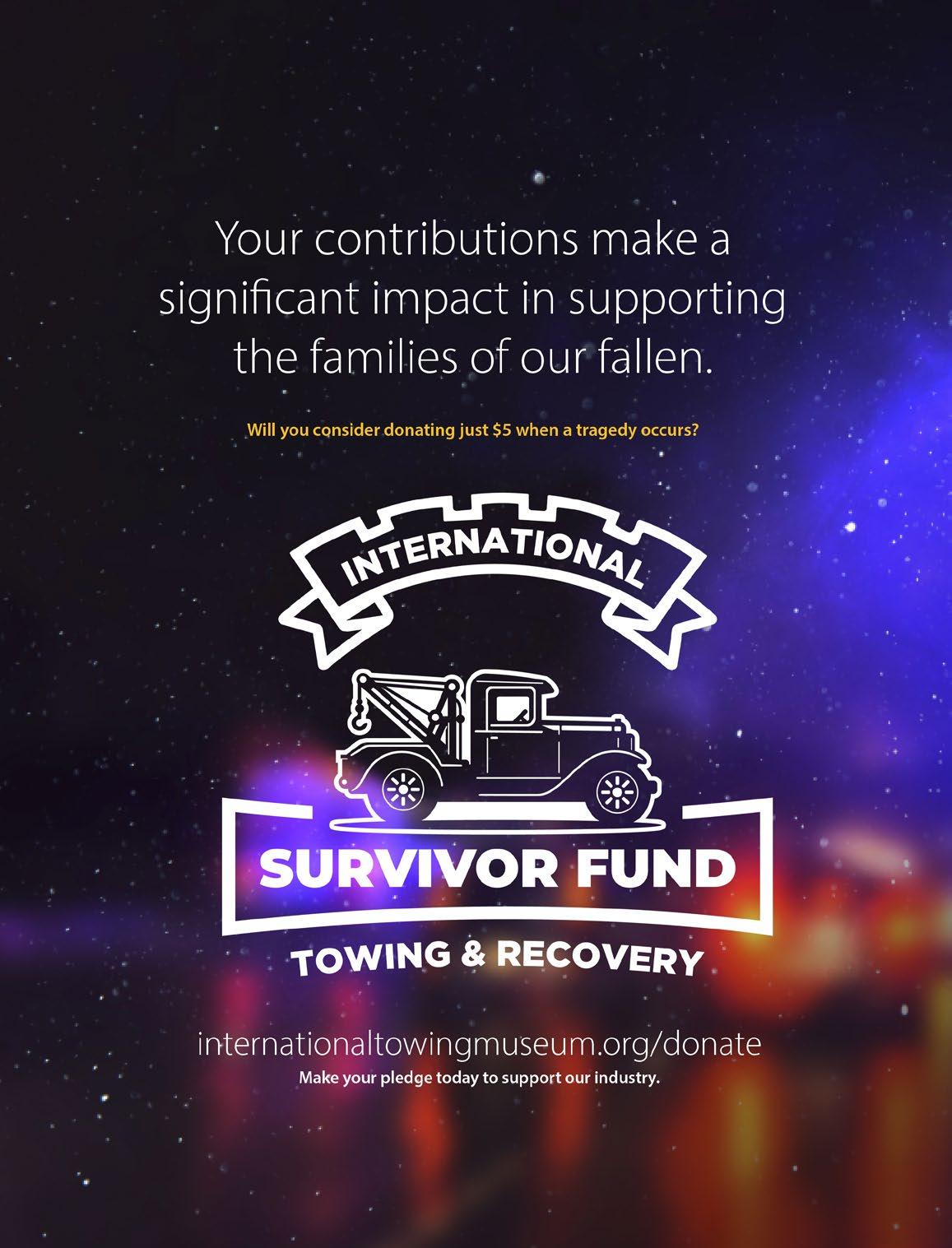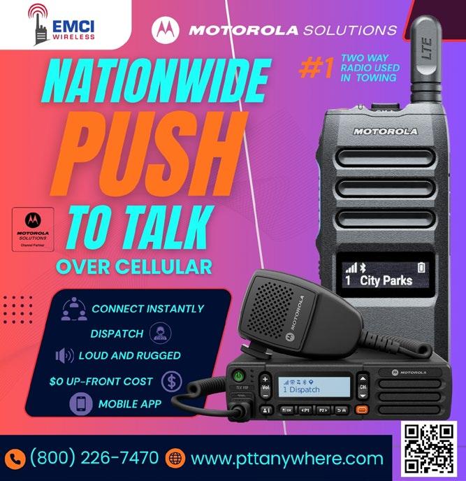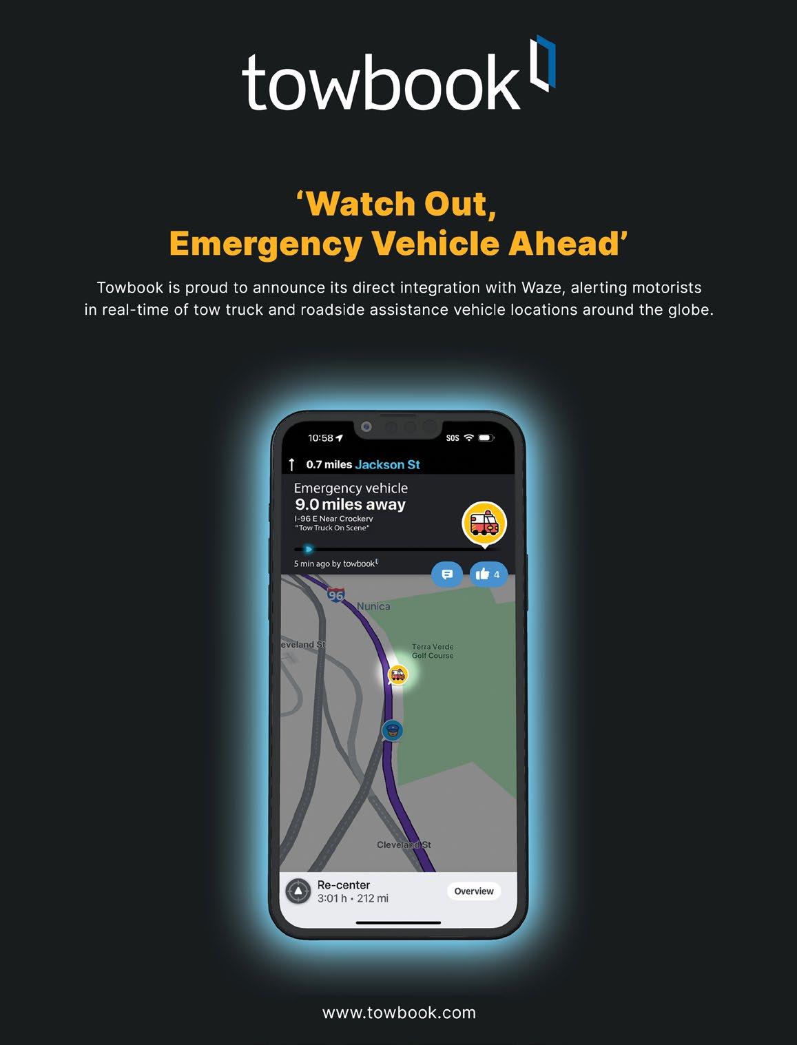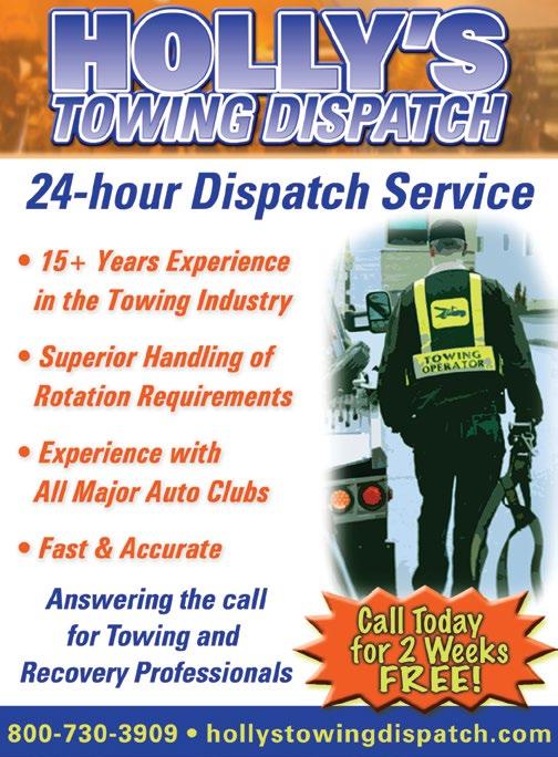 Tow Professional is distributed to qualified Towing & Recovery’s Top Decision Makers. Publisher is not liable for all content (including editorial and illustrations provided by advertisers) of advertisements published and does not accept responsibility for any claims made against the publisher. It is the advertiser’s or agency’s responsibility to obtain appropriate releases on any item or individuals pictured in an advertisement. Reproduction of this magazine in whole or in part is prohibited without prior written permission from the publisher.