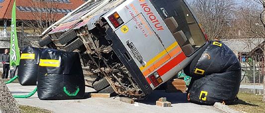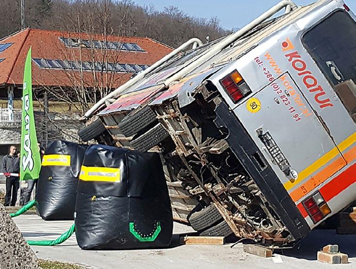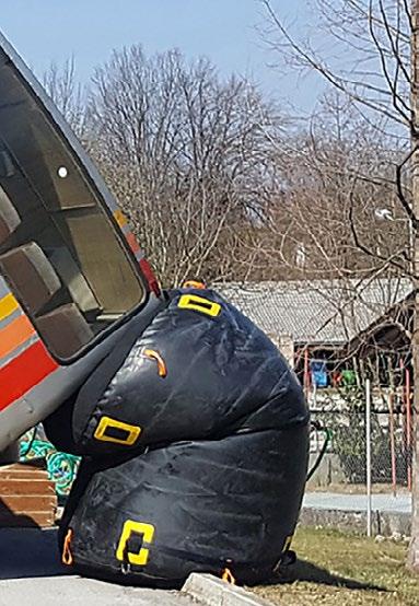 As the bags inflate, they work in tandem with wide straps and slings from the wrecker to help upright the vehicle.