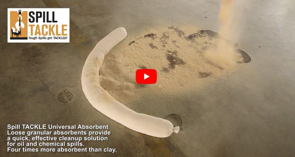 “Using Spill Tackle has been a gamechanger for us. Sure, it costs more, but one 20-pound bag of Spill Tackle does the job of three to four bags of regular oil dry,” Anderson said. “It does not soak up water like regular oil dry does and is much lighter, so when you go to retrieve it and dispose of it, it is At Zip’s AW Direct, Spill Tackle is
