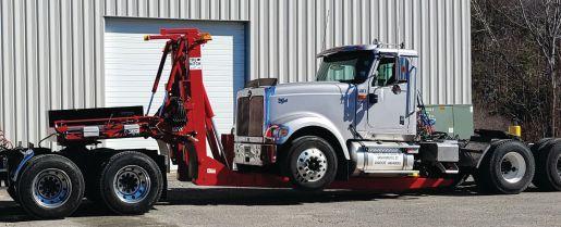 • There are no pinch points when towing with a TruHitch – Towed loads are secured to the Tru-Hitch booms and pivots at the fifth wheel. You can make turns at up to 90 degrees without worrying about pinch points. And just like a trailer, the load follows you around corners. Other under-lifts that pivot at the stinger mean maneuverability is limited. When you turn left the load wants to go right and vice versa. This is never an issue with a Tru-Hitch. • Cost- Traditional tow trucks are heavy, long, and expensive to operate. Other fifth wheel attachments require modified wheelbase tractors and complicated bracketry to mount and use. A Tru-Hitch comes complete, ready to attach to a standard tractor, with no special mounting requirements or additional cost. It can run on its own self-contained hydraulics, or connect it to a PTO, it’s your choice. Radio remote control and rigging items are included. A Tru-Hitch can lift up to 32,000 lbs. and tow up to a gross combined weight rating of 140,000 lbs. Tru-Hitch is the safest heavy duty towing solution for the heavy-duty tower. Visit www.truhitch.com for more information, or call 860-379-7772 to order your Tru-Hitch today.