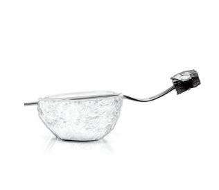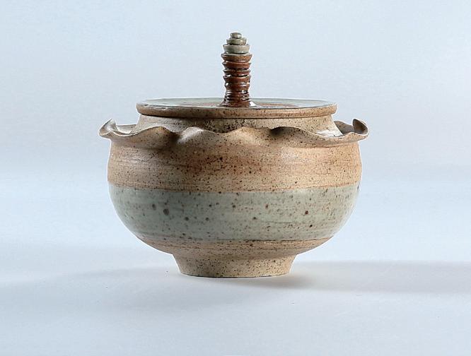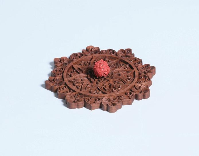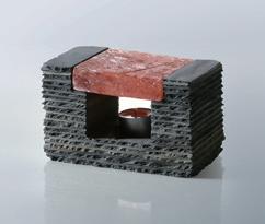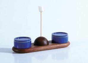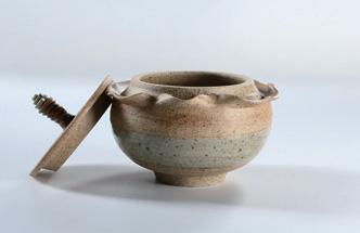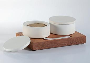 另外,我们邀请经验丰富的手工艺师傅,运用中国古老的制陶工艺,在不借助模具的情况,单纯靠手工制作不同规 格的碗和盘,和展示架配搭,组成佛手托物的一种意境的形态。这些碗和盘都是采用陶土通过高温烧制的,因为陶 土里面含有金属矿物质,所以在高温烧制的情况下,釉面能够自然呈现一些深褐色的斑点,但是我们不认为这些斑 点会影响到产品古朴、自然的质感,因为他们都是古朴的、独一无二的。