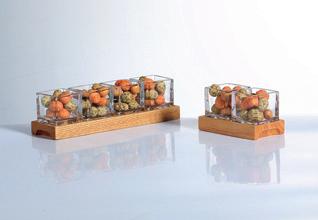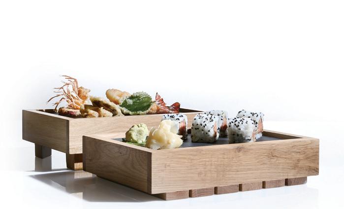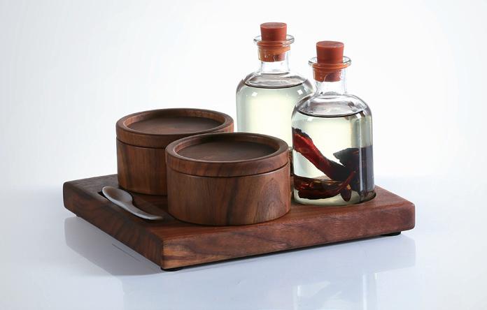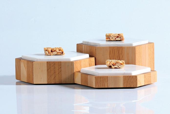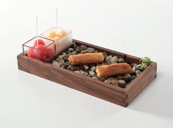 公司已将产品系列从自助餐摆件延伸到了Dinner ware。材料包括胡桃木、白橡木、石材、玻璃、 不锈钢、PC、环保可回收材料等等。