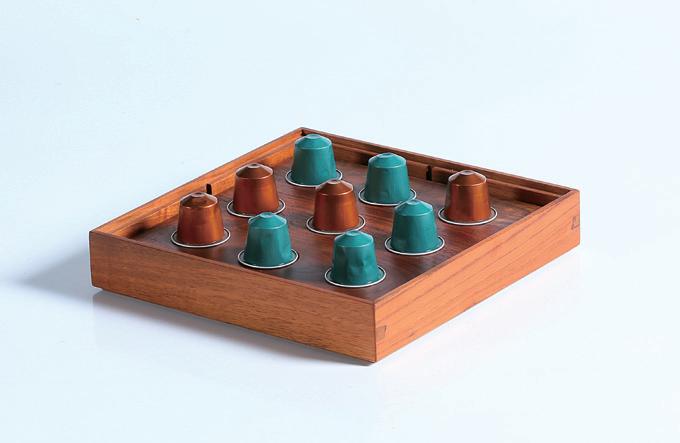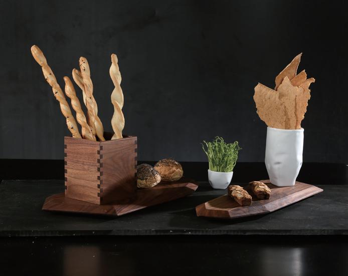 我们从这种线条设计出多种不同大小、不同高度的展示架。考虑到餐厅的不同装修风格需要不同的色系,我们采用 白橡木和胡桃木两种不同色系的木材,生产出深色和浅色的产品.