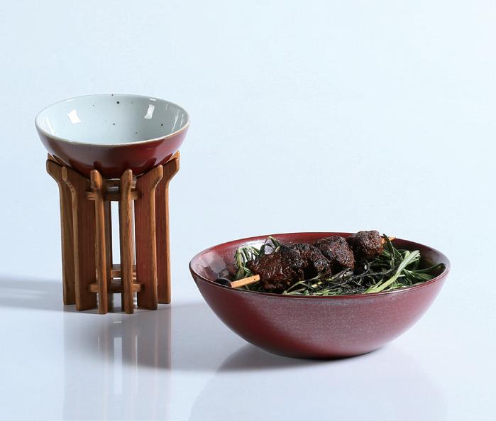 Furthermore, we had invited the experienced artisans, using the ancient Chinese crockery making-craft, creating various hand-made specifications of Bowl and dishes without any help of mold—by handmade purely, to match with the buffet display Shelf, incorporating the artistic of Buddha’s hand.