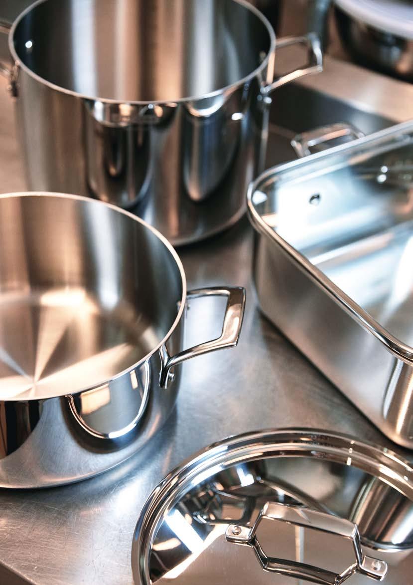 Toda la resistencia y el desempeño superior de ollas de acero inoxidable con cuerpo/fondo triple o aluminio.