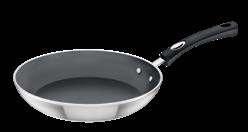 A collection of stainless-steel, iron, and aluminum professional Frying pans with varied interior coatings to fit your menu.