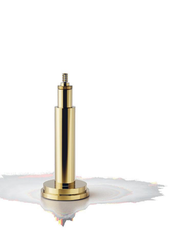 The Apex is precision-milled from solid brass or aluminium alloy and mechanically joined via a clear acrylic machined tube to an internal injection-moulded form. The lamp is fitted with a custom-made slim-profile disc LED to provide dimmable 2600K, 94+ CRI, and 100+ lumens illumination.