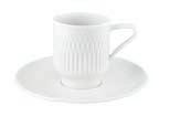 A brancura da porcelana reforça a sobriedade deste modelo de recorte clássico e a delicada ondulação constitui um elemento de originalidade e encanto. Traços que marcam Portugal e definem a porcelana de referência.