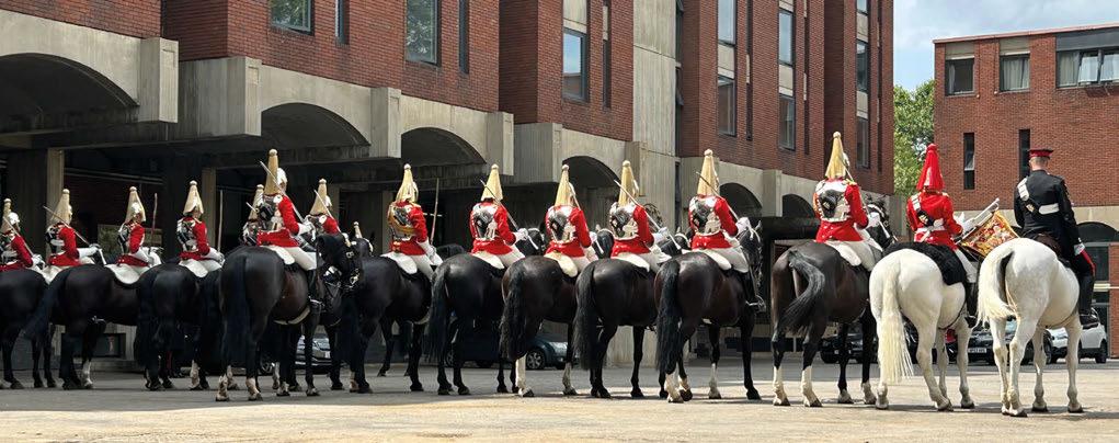 Members were hosted by LSgt Jacob Lockwood, who provided a fascinating insight into the lives of the horses and personnel of the regiment, starting with watching an inspection of the King’s Life Guard before they headed out to Horse Guards Parade for the Changing of the Guard. Moving inside, the visit then included a fascinating talk by members of the Household Cavalry, including a walk through the saddlers’ room, where military saddlers hold responsibility for maintaining all ceremonial uniforms for soldiers and horses.