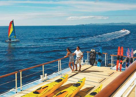 динок на березі, але з можливістю щоранку бачити за вікном новий пейзаж. Щоранку ви будете прокидатися в іншому місті і з насолодою пити каву на балконі », — описують привабливий образ життя власники судна. Само собою, на кораблі довжиною 196 метрів і шириною майже 30 знайшлося місце для тренажерних залів, басейнів, велосипедних треків, тенісних майданчиків і багато чого іншого. Потрапити в свою «морську квартиру» не так просто, як в земну: посадку можна здійснити в портах, де лайнер робить зупинку, або за допомогою вертольота (на судні є майданчик, що підходить практично для всіх типів цих повітряних суден).