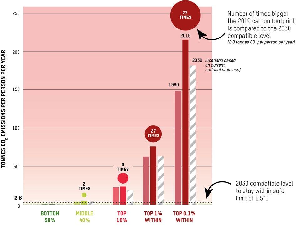 The emissions by the richest are driving the planet headlong towards catastrophe. Limiting long-term global warming to 1.5°C requires a 48% cut in total global emissions by 2030 (compared to 2019 levels).15