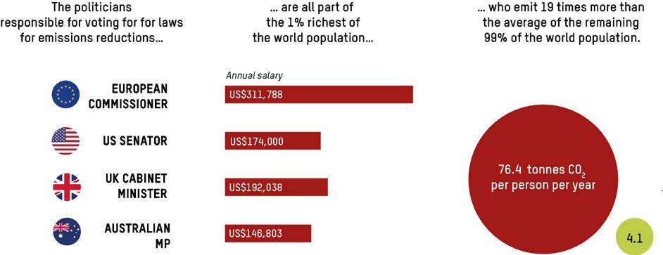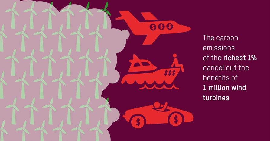 This means addressing not just the historic and current responsibilities of highemitting nations and major corporations for their role in driving carbon emissions, but also – critically – the disproportionate role that the richest individuals play in the climate crisis through their emissions, investments and capture of politics. It means a recognition that a radical increase in equality is a precondition to ending climate breakdown and poverty.