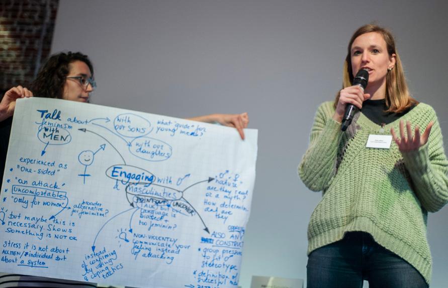 Comme expliqué précédemment, Oxfam Belgique place la justice de genre au cœur de chacun de ses programmes. Il en va de même de nos activités internes. En 2022, nous avons continué de sensibiliser nos employé.e.s aux principes féministes d’Oxfam et avons organisé des sessions de formation sur les masculinités et la manière dont elles façonnent notre pensée, nos structures et nos systèmes. Nous avons également commencé à appliquer la « budgétisation sensible au genre », une méthode d’analyse budgétaire qui devrait nous permettre de mieux étudier l’impact de l’allocation de nos ressources sur les inégalités de genre. Que nous soyons disposé.e.s à l’admettre ou pas, la coopération internationale est intimement liée à l’histoire coloniale. Des relations de pouvoir (néo) coloniales perdurent (souvent involontairement), notamment dans nos récits ou nos relations internationales. La décolonisation de notre secteur et le rééquilibrage des rapports de force figurent donc depuis longtemps parmi les priorités d’Oxfam. En 2022, notre trajet de décolonisation est passé à la vitesse supérieure. En effet, Oxfam et d’autres ONG internationales ont adhéré à l’initiative Pledge for Change, dont l’objectif est de repenser et décoloniser le rôle des organisations actives dans le secteur de la coopération et de l’humanitaire. Au sein d’Oxfam Belgique, nous avons organisé des sessions de sensibilisation et de réflexion et élaboré un document stratégique intégrant nos projets de décolonisation au cours des prochaines années.