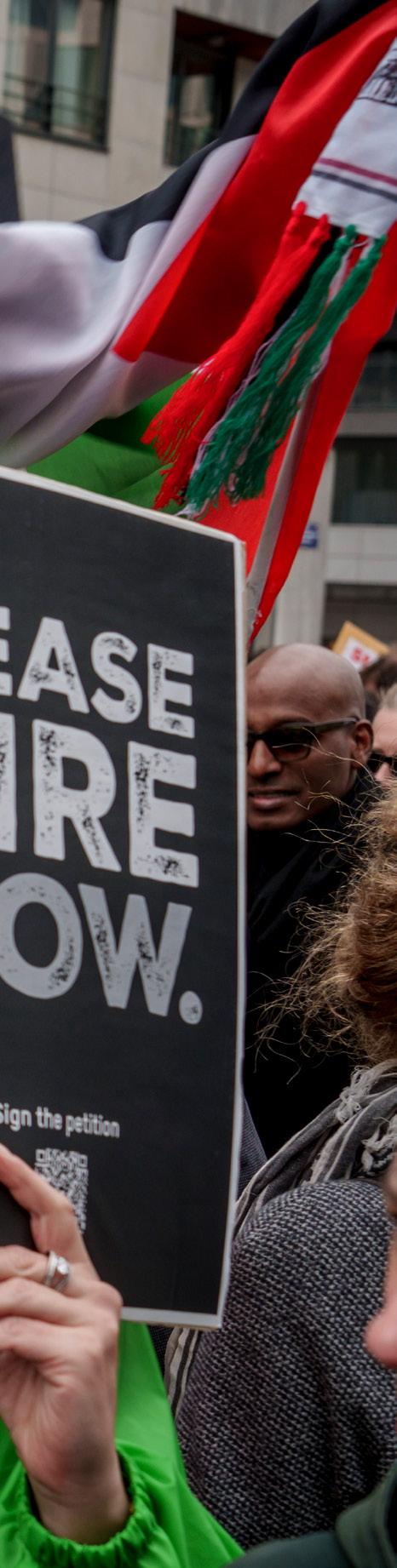 STOP ARMING ISRAEL, CEASE FIRE NOW. Het zijn terugkerende slogans op de protestmarsen. Sinds de escalatie van het conflict in Palestina zijn tienduizenden mensen vermoord, de meeste onder hen kinderen. Bezorgde burgers en organisaties trokken al tientallen keren door de straten van Brussel en Gent. Ze torsten borden, spandoeken en kinderen mee, scandeerden tot ze schor waren, hielden vurige betogen. Bij Oxfam pleiten we al lang voor een vrij Palestina. Sinds de jaren 50 zijn we actief in de regio en in samenwerking met lokale partners ondersteunen we de Palestijnse gemeenschap in handel en in de (her)opbouw van infrastructuur. We worden triest van de aanhoudende gruwelijkheden, de flagrante schendingen van de mensenrechten en het internationaal recht. Triest, jazeker, maar tegelijk strijdvaardig. We trekken ons op aan de duizenden mensen die mars na mars, door regen en wind, ook op straat komen. Aan het betoon van menselijkheid en verbinding. En dus gaan we door zolang het moet. Free Palestine!