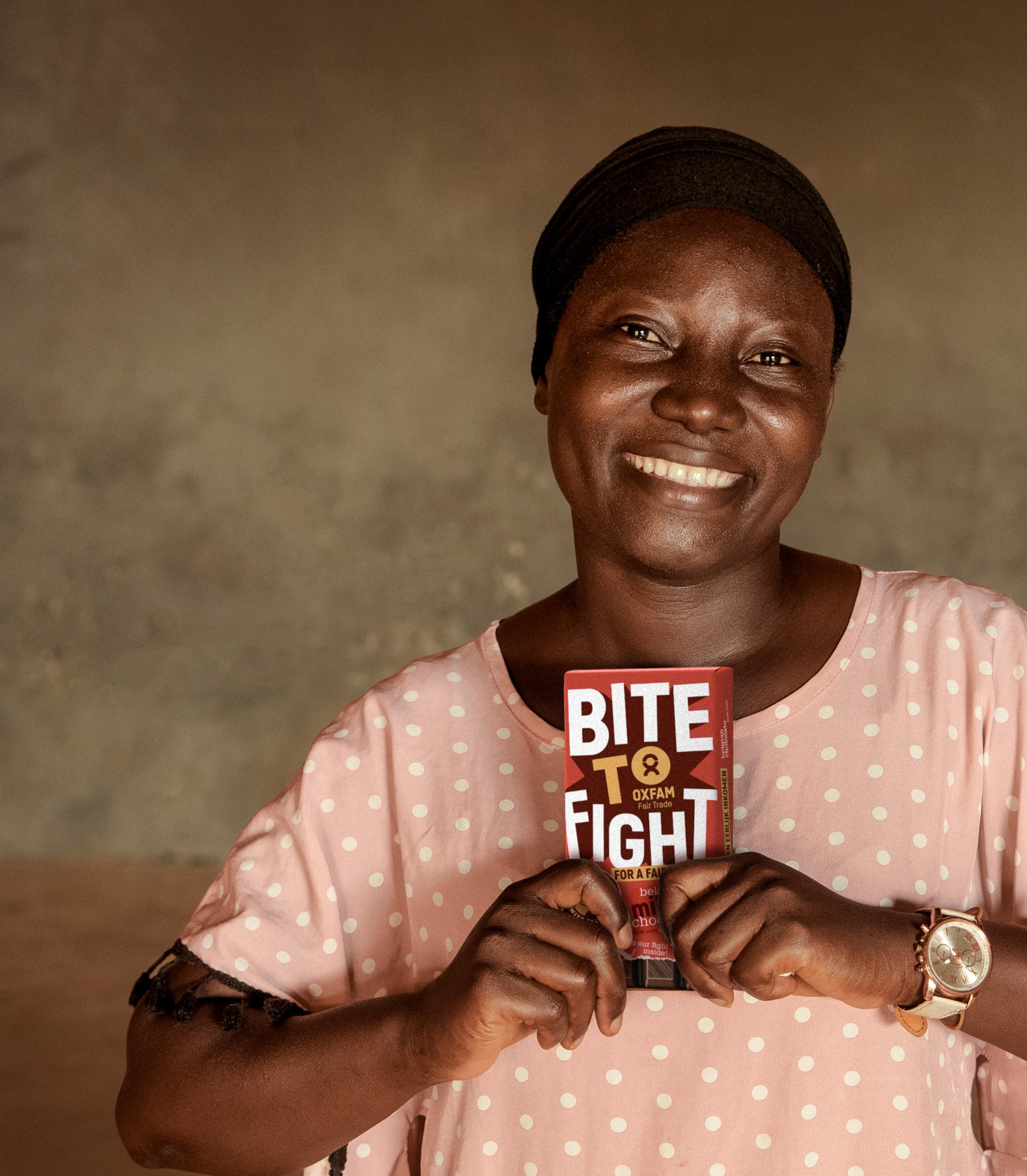 Avec le projet pilote Bite to Fight, la coopérative CPR Canaan, avec laquelle nous travaillons en Côte d’Ivoire, change la donne. Elle investit la prime Fairtrade et la prime Oxfam dans la diversification, la formation, l’agriculture durable, l’épargne et le microcrédit. Et les résultats parlent : depuis 2022, de plus en plus de familles atteignent un revenu vital. Selon Julien Tayoro, coordinateur du projet, 71 % des familles de la coopérative y parviennent aujourd’hui.