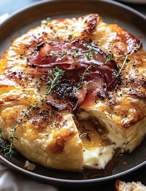 Baked Brie in Puff Pastry, with Honey, Fig, and Prosciutto