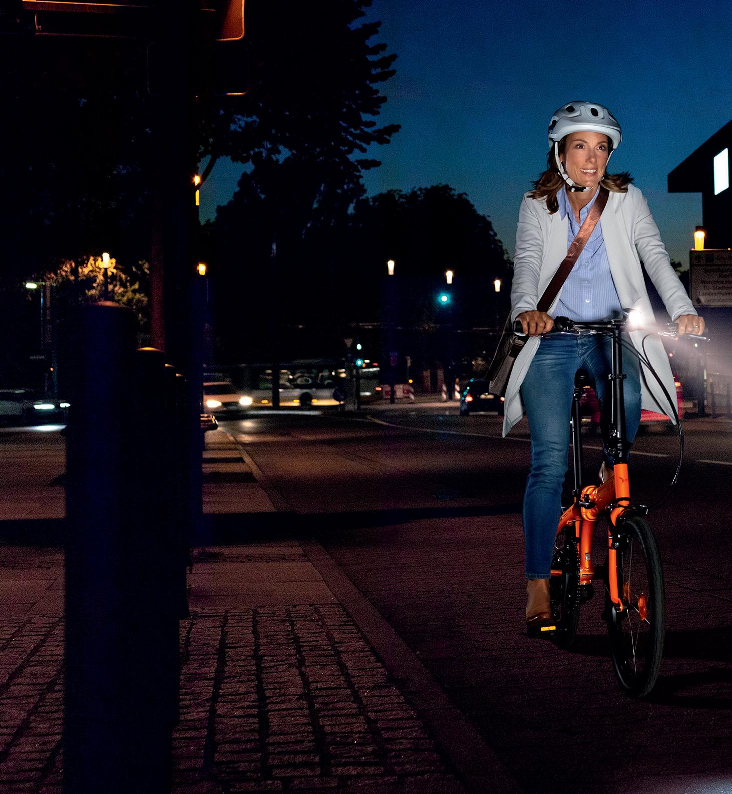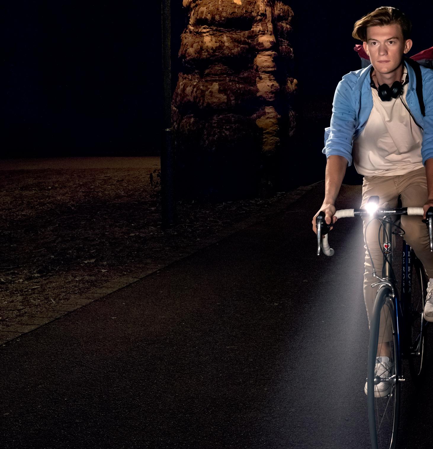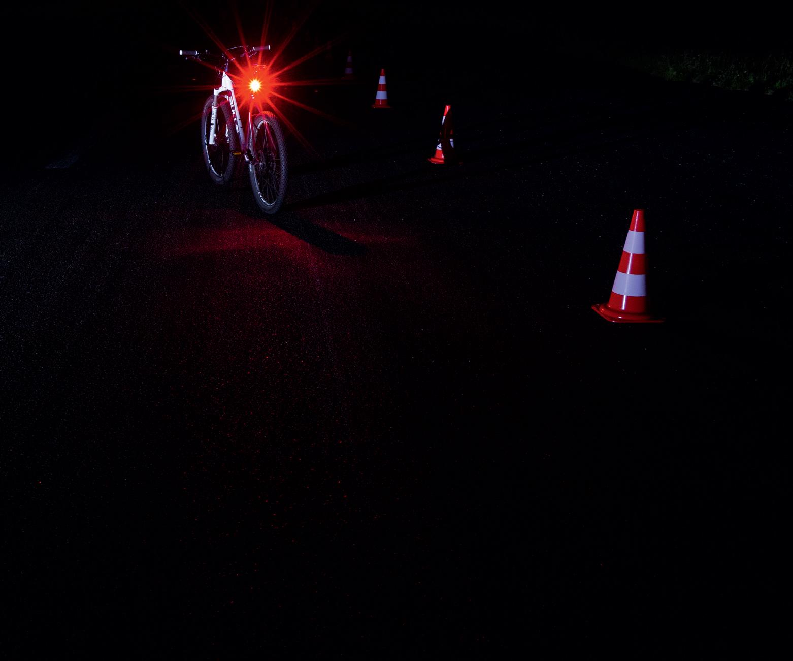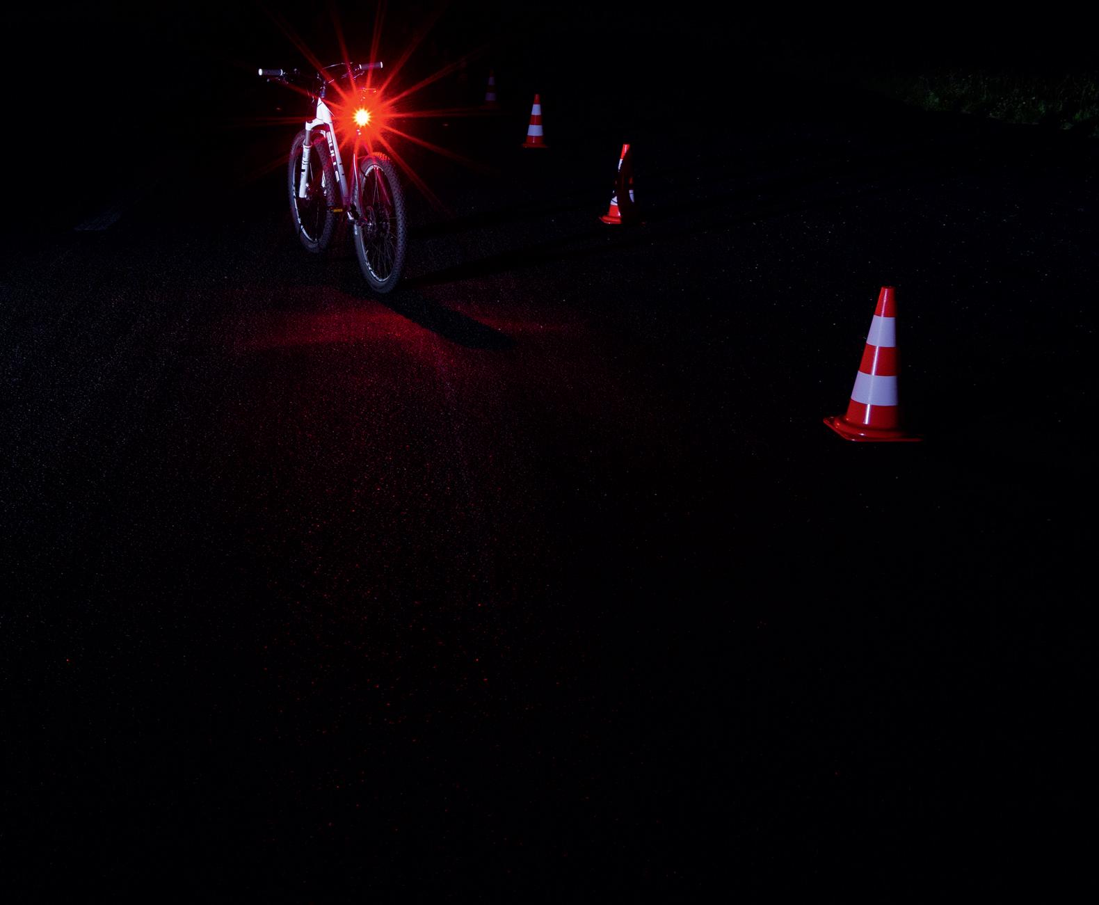 With up to 150 lumens of brightness, the rear light convinces with a fantastic visibility range of 2,000 metres, the brake light function and five light modes for day and night. In the energysaving flashing mode, the run time is a good 28 hours. The side window ensures that bike riders in city traffic are easy to see from both sides.