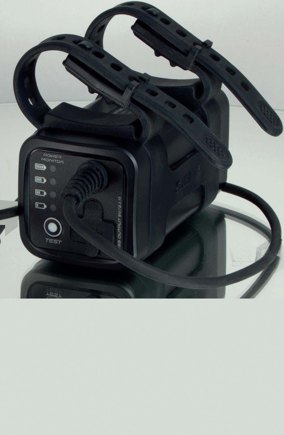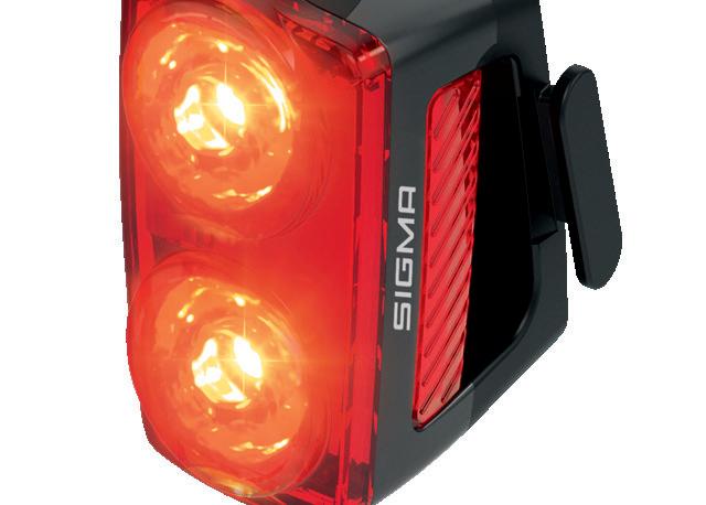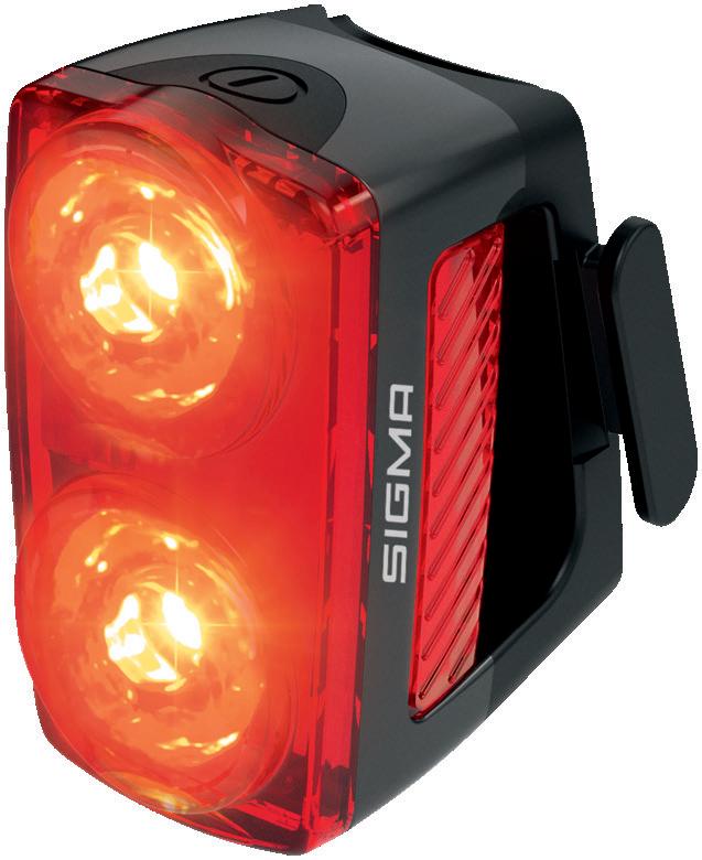 The integrated acceleration sensor enables the two bright LEDs to signal braking for others on the road.