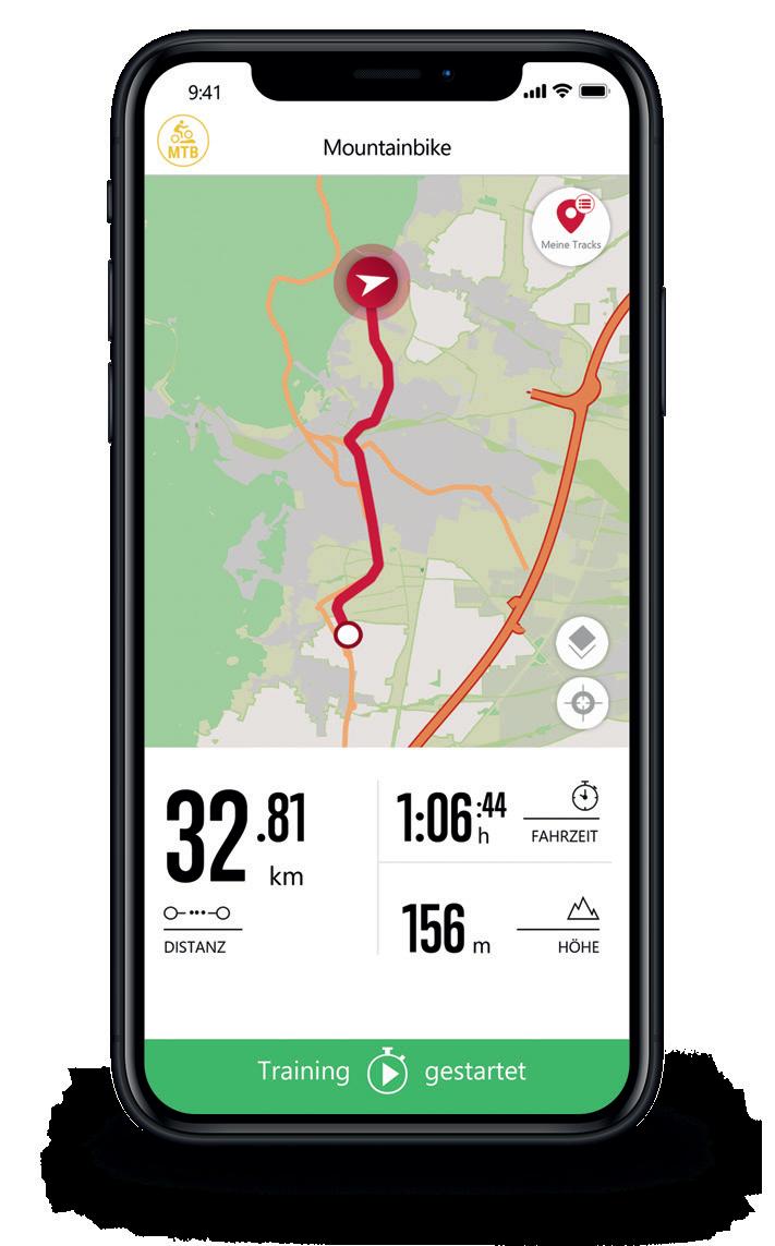 The ROX 2.0 bike computer can be connected to the komoot app on a smart phone. Turn-by-turn instructions can be shown as an arrow on the display or inside the Red Circle. This circle on the display is highlighted in color and shows the distance to the next turn-off as a colored bar.