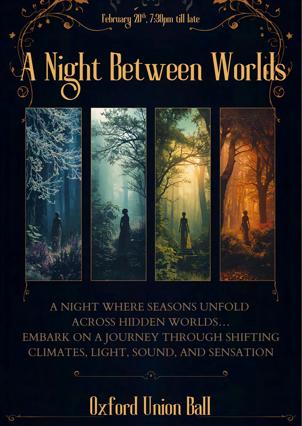 Fromfireandsnowtoforestsandoceans,ourNight BetweenWorldsBallwilltransformtheUnionroomby roomintodistinctbiomesforoneunforgettableeveningto roundoffHilaryTerm.
