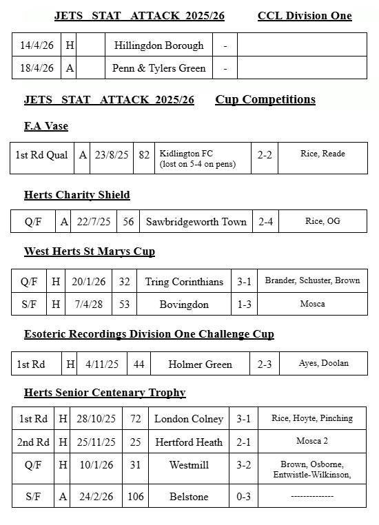 Herts Snr County League Pauline Mary Fox Trophy Winners