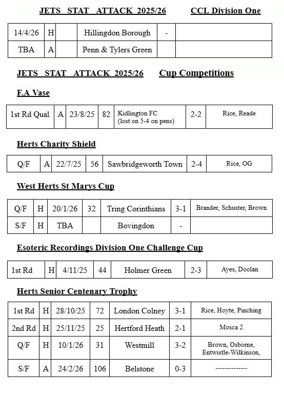 Herts Snr County League Pauline Mary Fox Trophy Winners