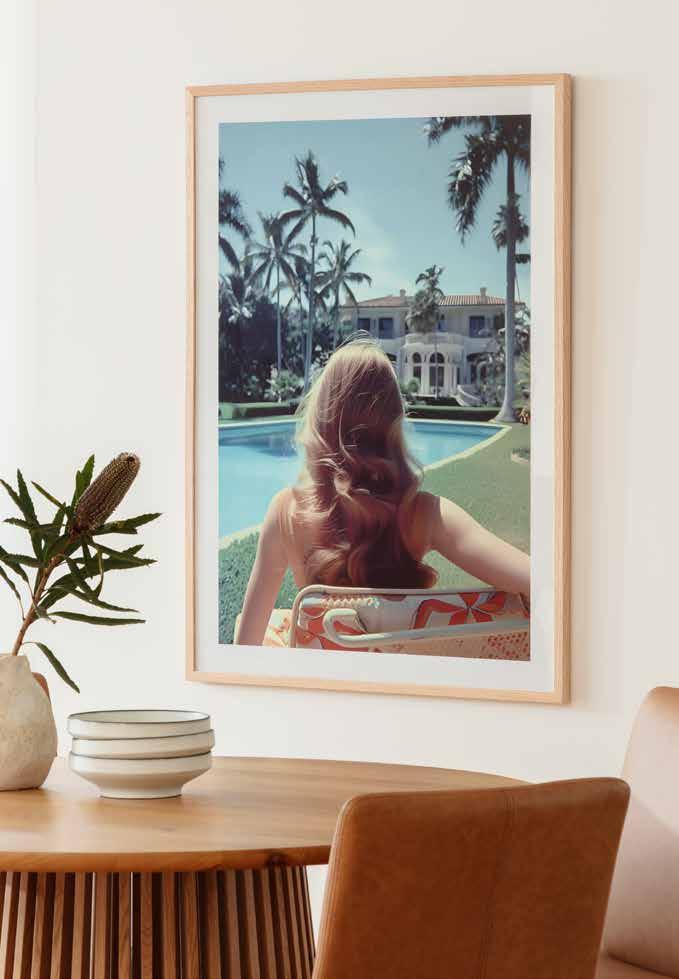 Escape to Palm Springs with this vintage-inspired look and feel, reflecting its vibrant colours, unique architecture, and laid-back lifestyle. Each piece not only serves as a visual delight but also tells a story of the stylish allure of this iconic location.