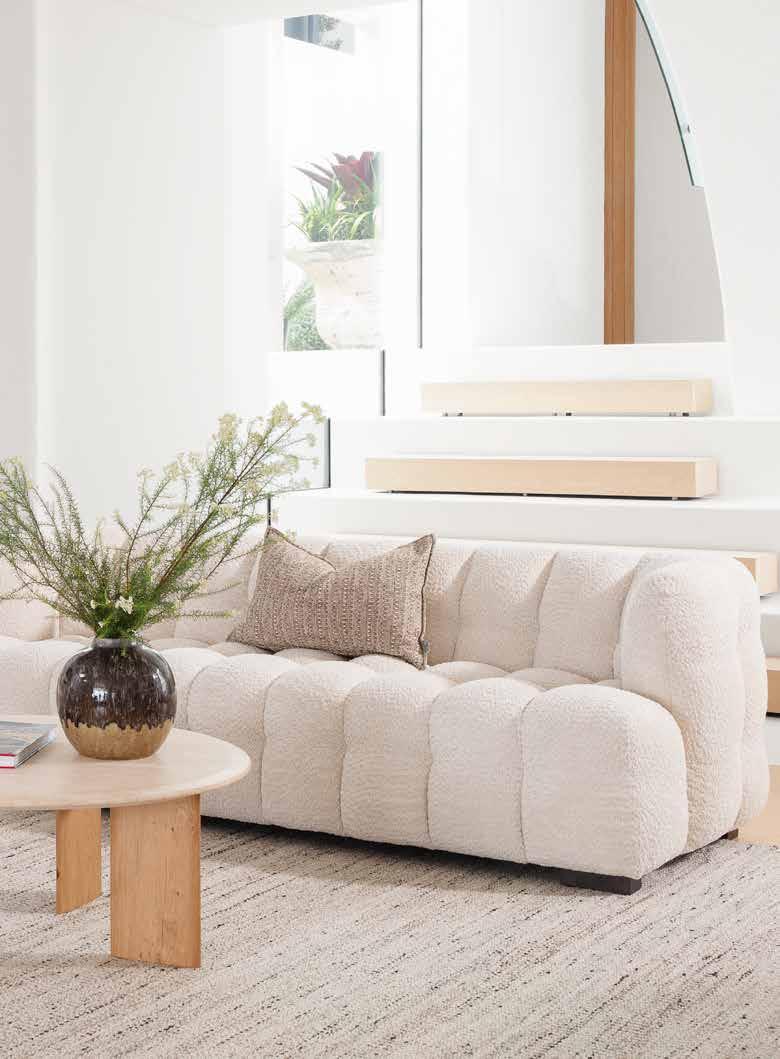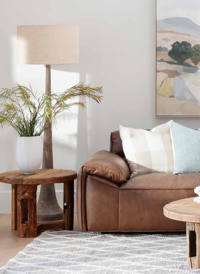 1. Bellanger Cushion 2. Dua Floor Lamp 3. Inga Vase Large 4. Twotone Bowl 5. Dixon Buffet 6. Petra Cushion 7. Remi Side Table 8. Grace Vase Small 9. Monaco Leaning Mirror 10. Lupe Sculpture 11. Barossa Rug 12. Gordon Sofa 13. Algiers Baskets Set of 3 14. Florin Vase Large 15. Orion Cushion 16. Root Coffee Table 17. Copper Canyon 1 Canvas. SHOP