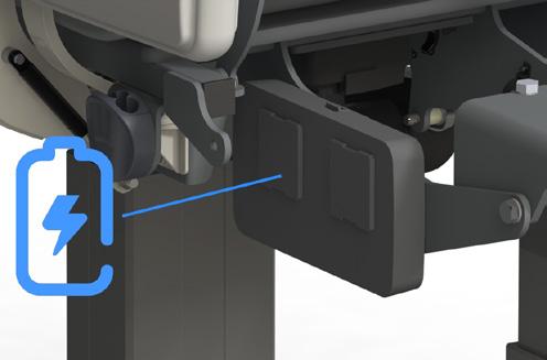 Komfort und Autonomie durch integrierten USB-Anschluss. Um das Wohlbefinden des Patienten während der Pflege zu verbessern, ist direkt in die Rückenlehne eine USB-Buchse integriert. So lassen sich Smartphones, Tablets oder andere mobile Geräte ganz einfach aufladen, ohne den Stuhl verlassen zu müssen. Diese Funktion fördert den Komfort, die Autonomie und die Kontinuität der digitalen Gewohnheiten des Patienten.