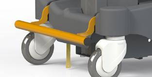 Die kompakte Liege ist mit einem 5. Richtungsrad und Doppellaufrädern mit einem Durchmesser von 150 mm ausgestattet für eine intuitive und einfache Lenkung mit deutlich reduziertem Schubaufwand. Unabhängig vom Gewicht ist die Liege leicht und einfach zu handhaben.