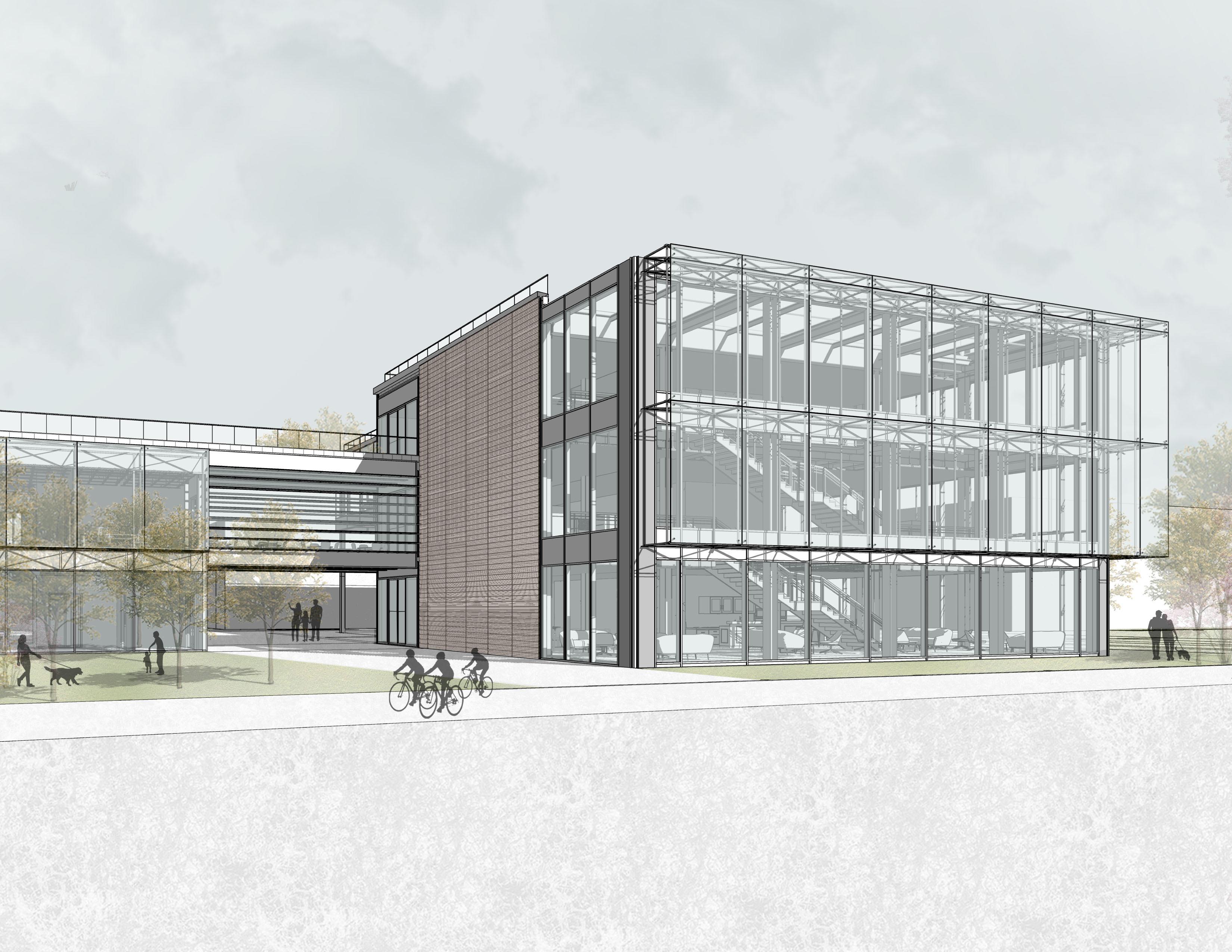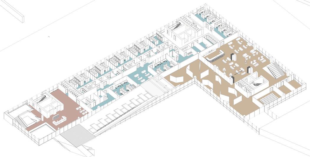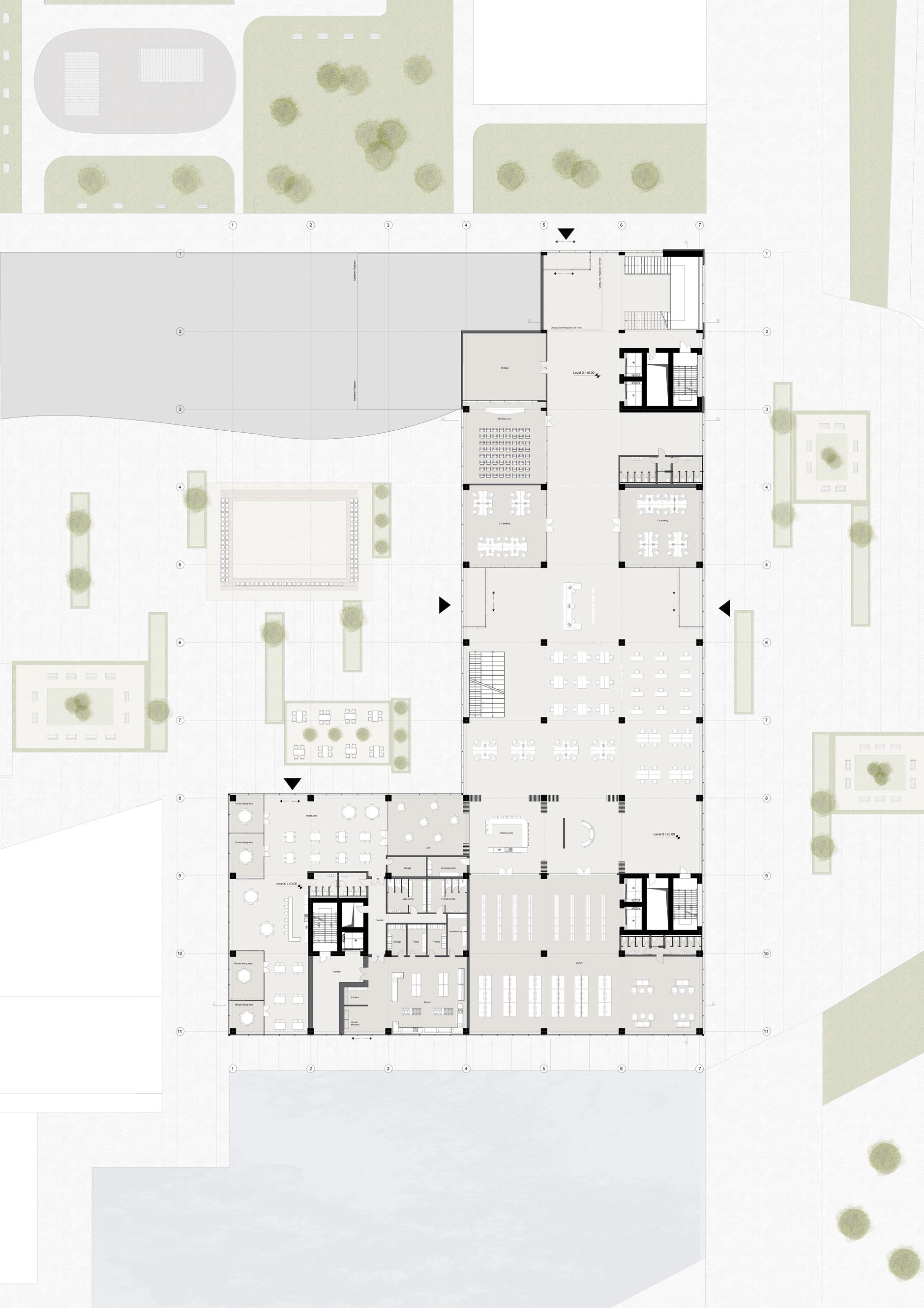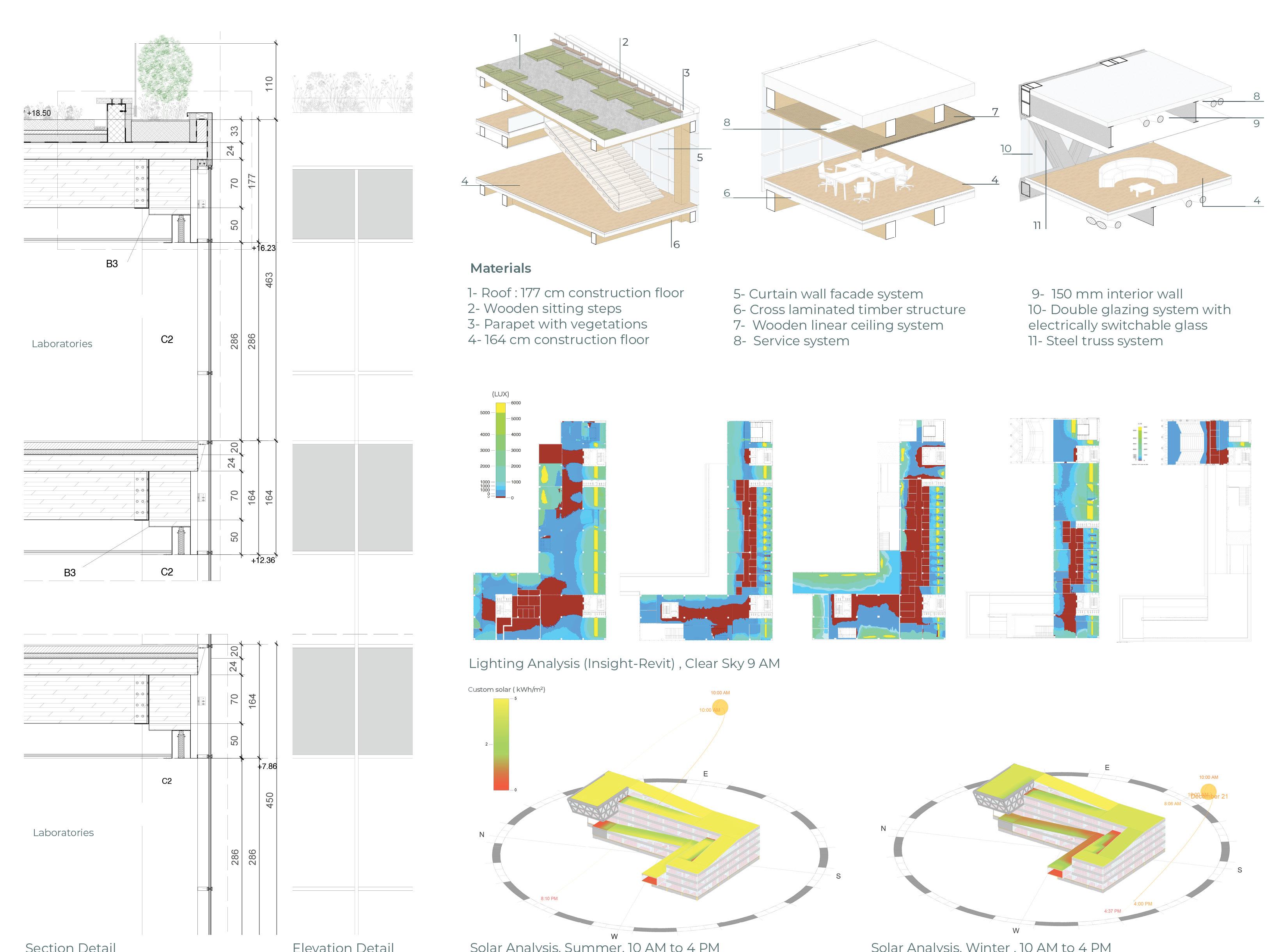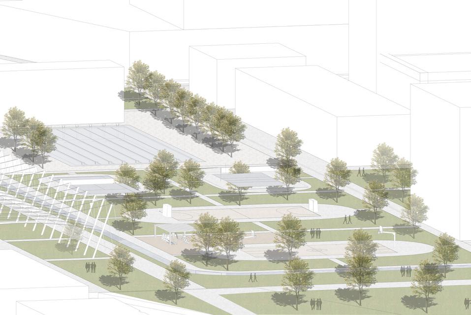 The Milano Innovation District hosted Expo 2015, today a center of knowledge and has established an ecosystem for social and economic development. The MIND’s backbone is called decuma no, a long artery that starts at the western gate and ends at the eastern one, where our project is located as an ending of the artery. Our starting point was to create a proper ending by re vitalizing the area with the green ramp and its master plan that transformed the area surrounding the new university campus into a park dedicated to sports and technology. The strategic location close to the new university and to the existing human technopole gave perfect ground for the development of a center dedicated to the research of natural science. The common ground (ground floor) is conceptualized as a translucent and flexible space, ful ly accessible by the public. In contrast, we designed the labo ratories in the above levels to feature a more enclosed design.