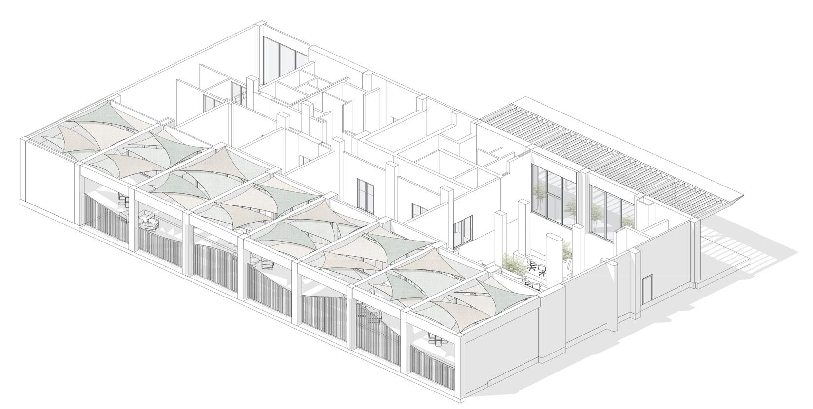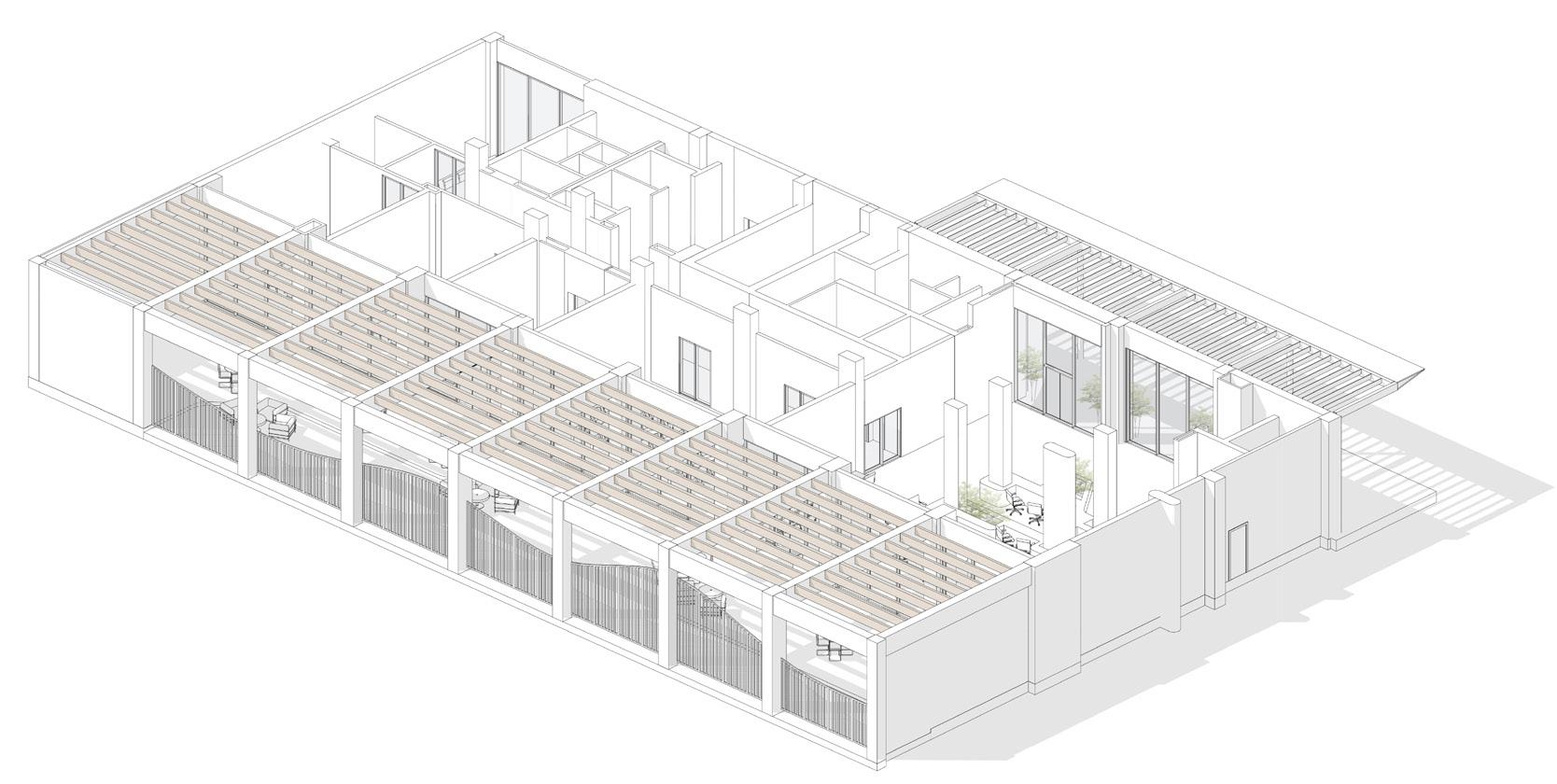 In the coastal city of Genova, this project reinterprets the courtyard as a spatial and environmental mediator. Rooted in the Mediterranean tradition of enclosed courts, the square plan establishes a defined perimeter while opening to a central void that acts as both social space and microclimatic regulator.